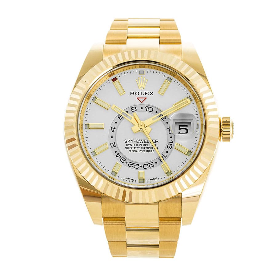 Rolex Sky-Dweller Yellow Gold With Fluted Bezel White Stick Dial 326938